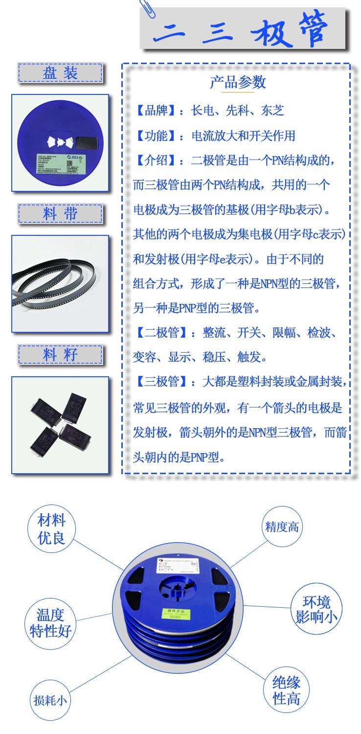 貼片三極管基本作用是放大,它可以把微弱的電信號放大到一定強度,當然這種轉換仍然遵循能量守恒,它只是把電源的能量轉換成信號的能量罷了。